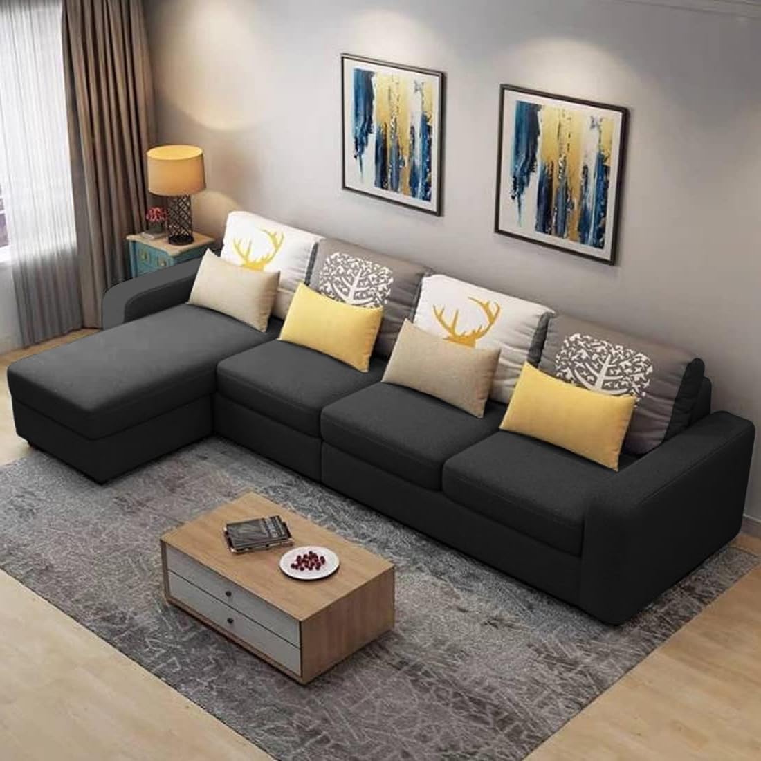 Casafurnish Sebassoy 5 Seater Fabric LHS L Shape Sofa Set (D…