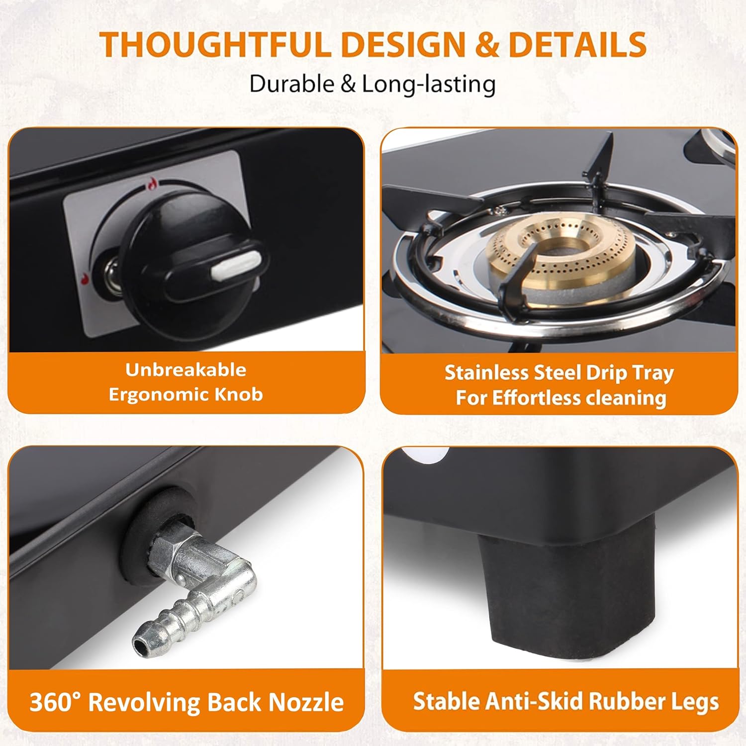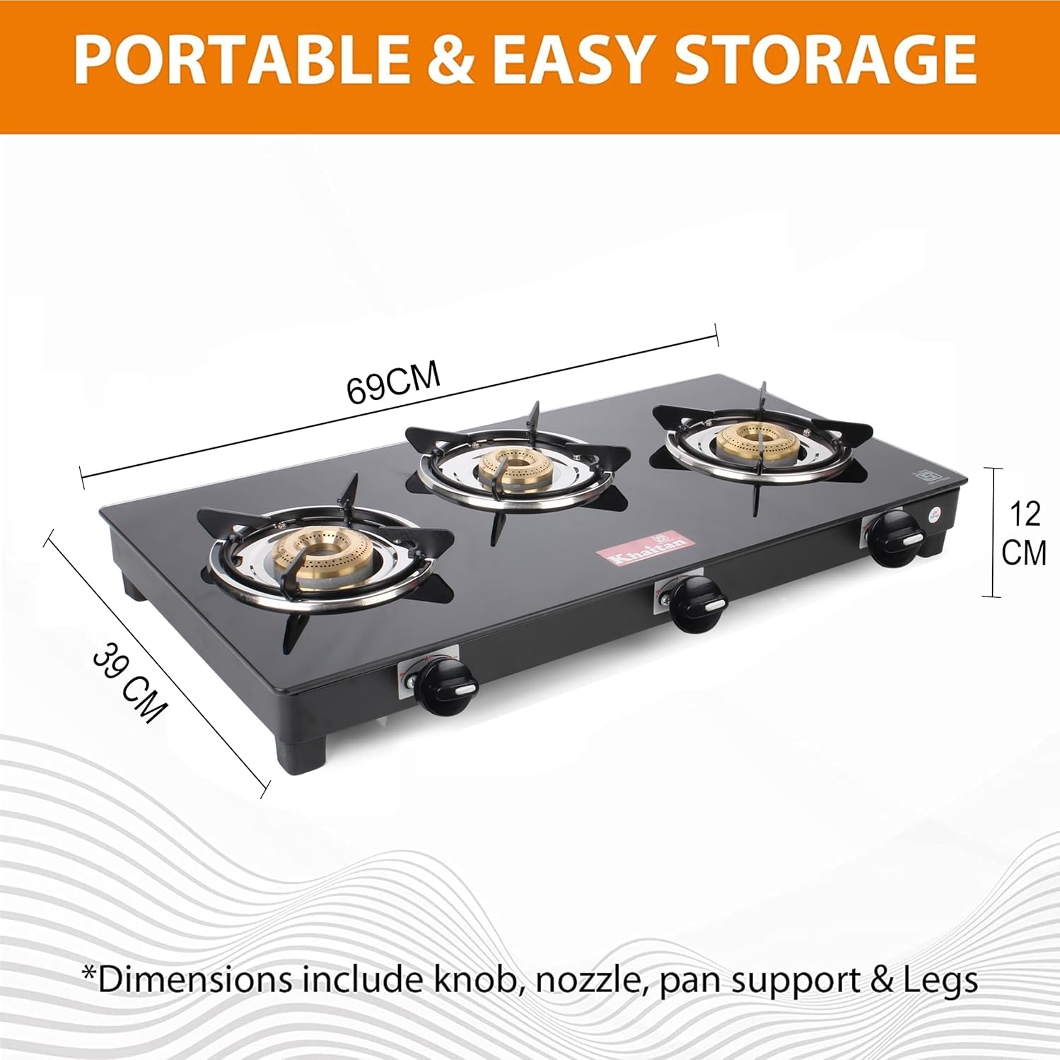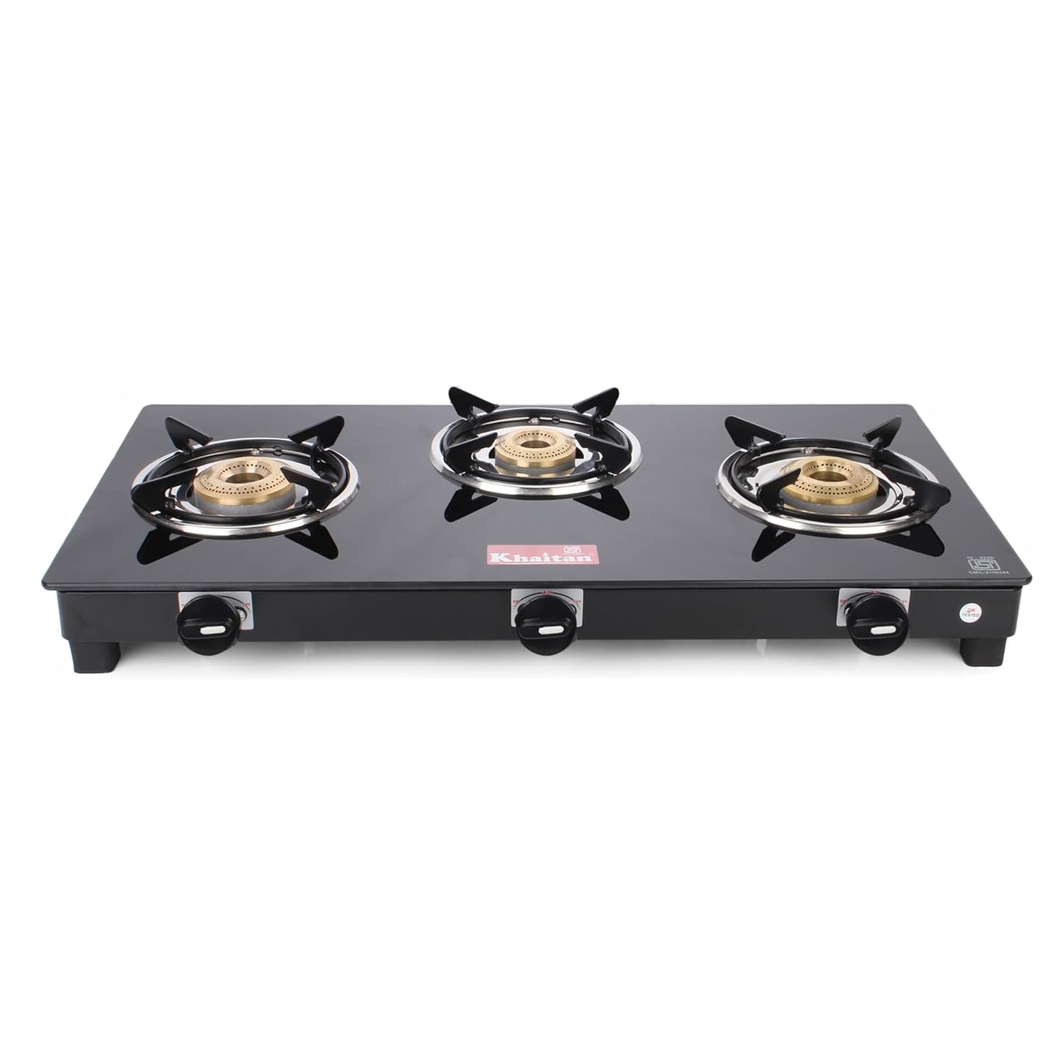 Khaitan 3 Burner Active Black Toughened Glass LPG Gas Cookto…