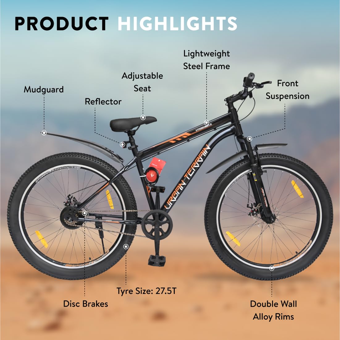 Urban Terrain Bolt Cycle 27.5 inch Single Speed Bike with Fr…